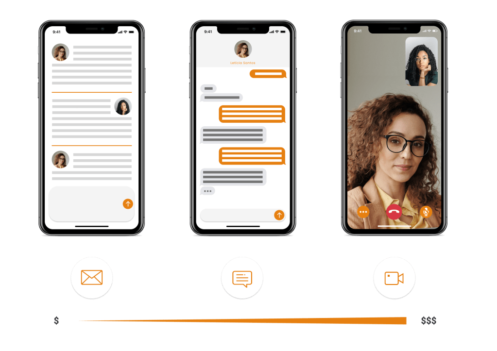 The solution that has been prioritized to make consultations more affordable is to provide consultations in email and chat format. Inspired by existing platforms in the market, this format allows psychologists to conduct consultations with less effort and resources, reducing the cost of the consultation. The three consultation modes are represented below.