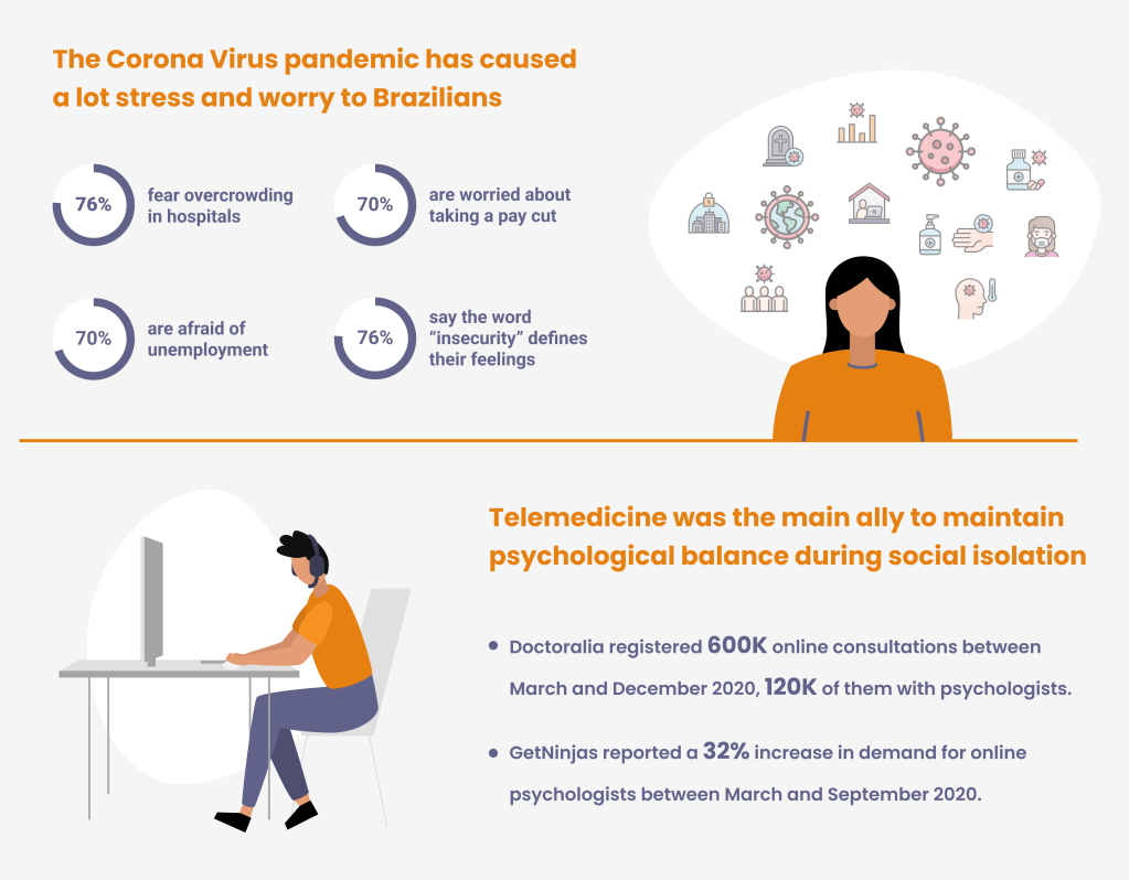 Motivated by the impact that the COVID-19 pandemic had on the mental health of Brazilians, during the course promoted by Leandro Rezende, mentor at UX Unicórnio, the team composed of Fernanda Albuquerque, Gabriel Moretti and Luana Menezes started the first UX Design project, accepting the challenge: