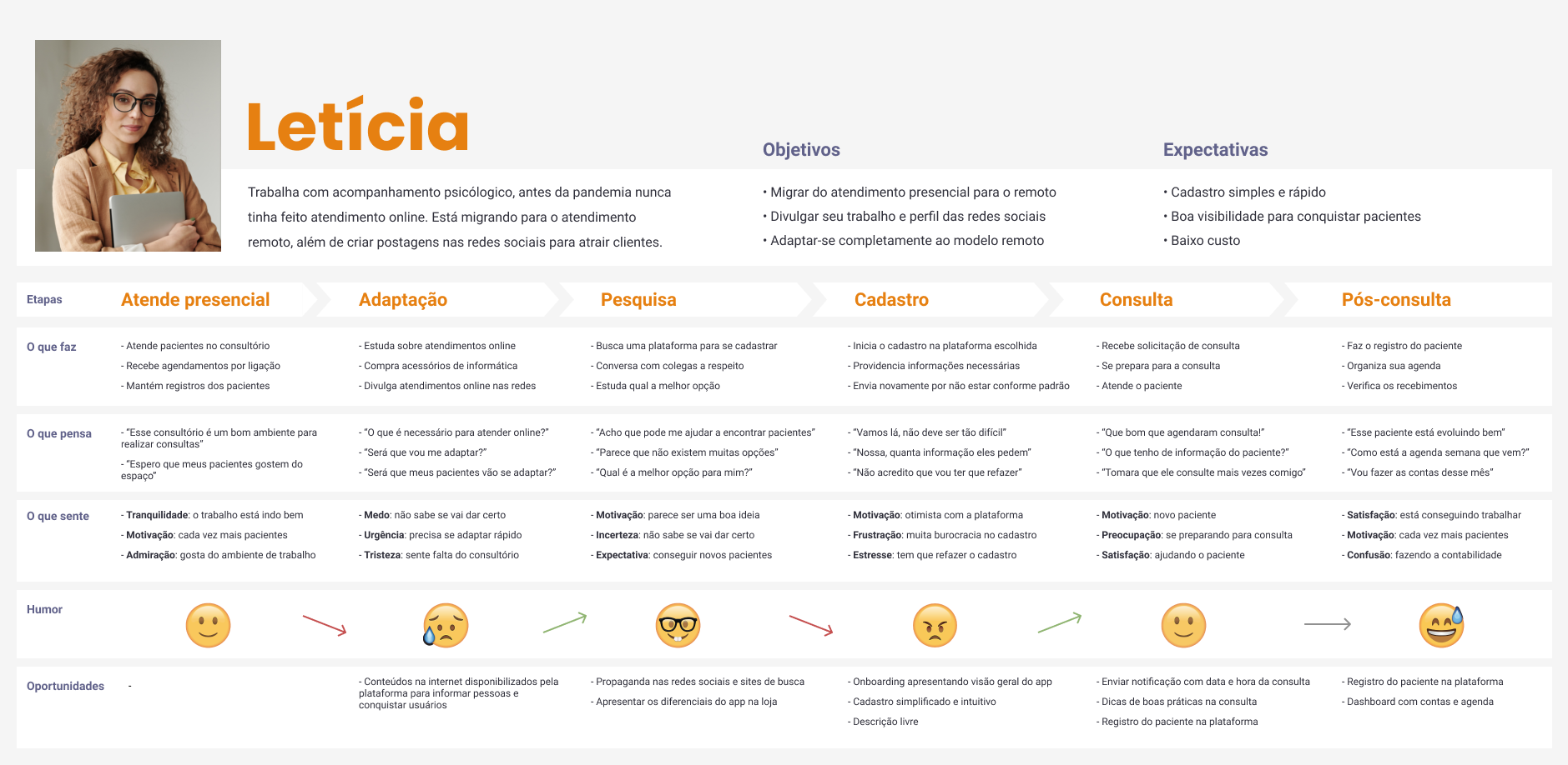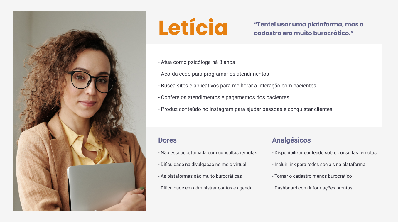 Letícia represents healthcare professionals who are adapting to the remote care model, looking for tools and platforms.